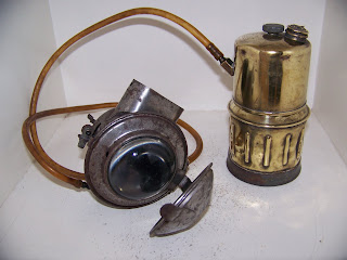 N° C88 – Hunter’s headlight, deep concave 3 in. highly nickeled reflector and 3 in. glass lens throwing a powerful light over 300 ft. Equipped with self-lighter attachment – no matches needed. Strong rubber hose, steel generator. Burns 8 hours. Belt and head strap inclused With The outfit ... ... ... ... ... ... ... ... ... ... ... ... .... Per dozen: $ 90.00 "